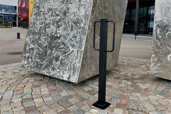 Pollaren är tillverkad av 60x60x3 samt 16x2 rör i varmförzinkad stål höjd 900mm.