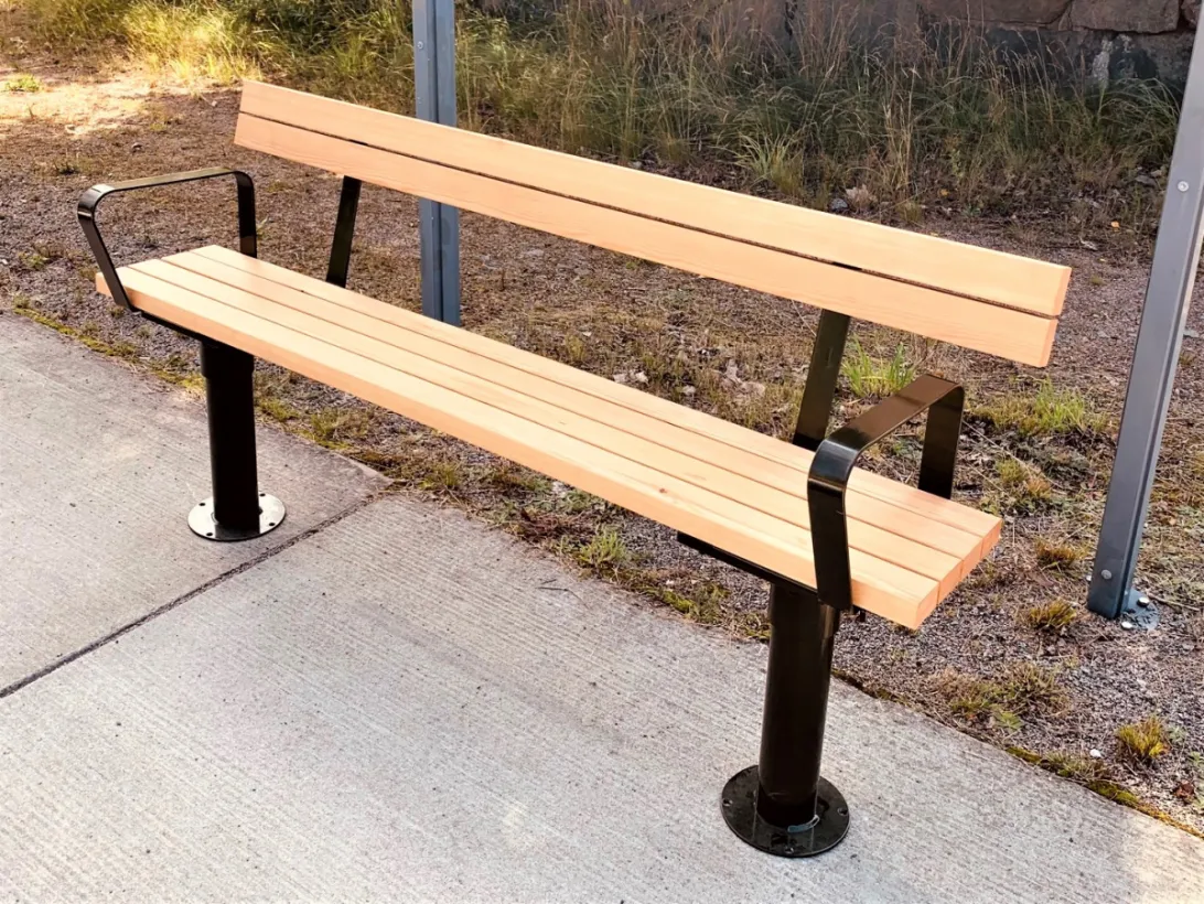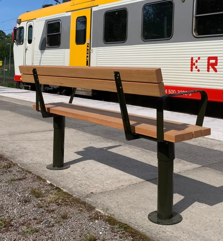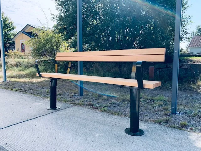 Tillverkad i stål konstruktion med sittyta av oljad sibirisk lärk trä.