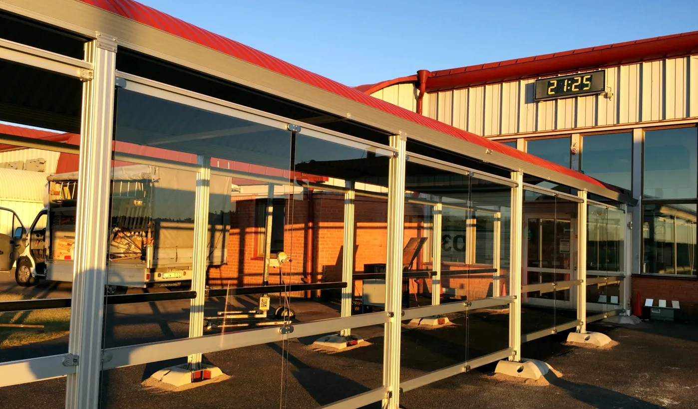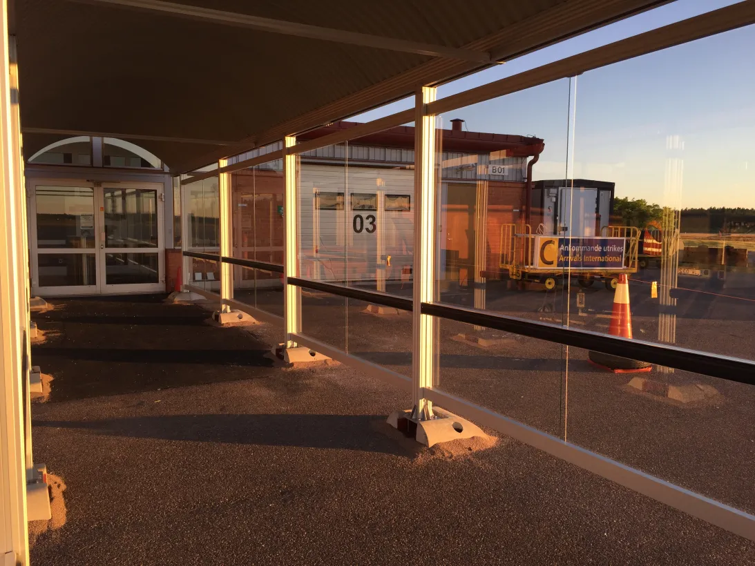 ● ● ● Jönköping Flygplats ”Landgång” på Jönköpings flygplats vid ankomst från utlandet. Vägg av härdat glas på en långsida. Alla referenser